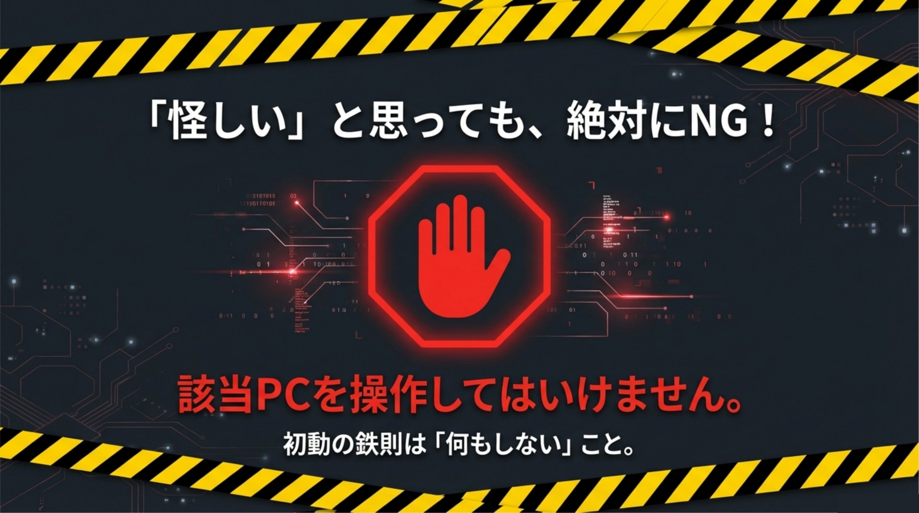 内部不正発覚時やインシデント発覚時、あせりや不安から誤った行動や操作をしてしまいがちです。結果として「重要な証拠データが永久的に消失してしまう」「機器を故障・破壊してしまう」ケースも実はよく起こります。以下の行動は絶対にやってはいけません。