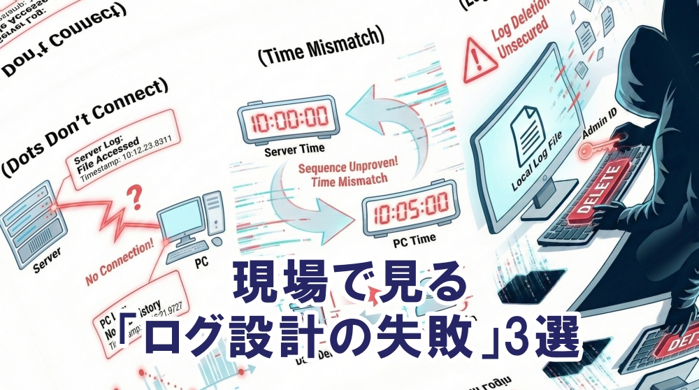 フォレンジック調査に入った際、「これでは追えない…」と頭を抱えるパターンは、大体この3つです。