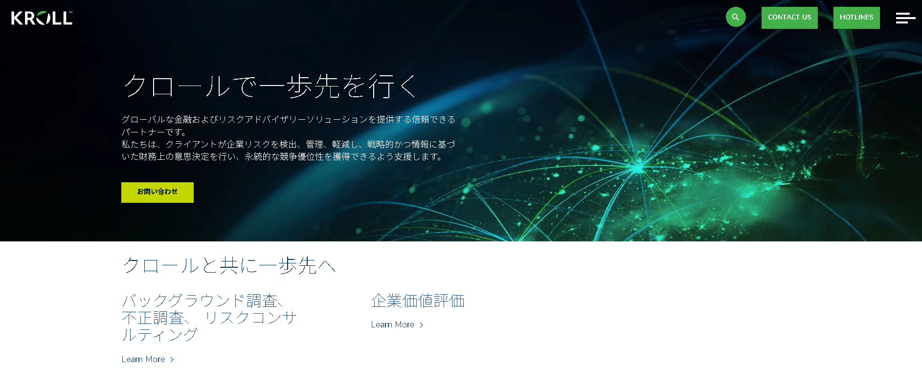 Kroll Japanは、世界最大規模のリスクコンサルティングファームのKrollの日本法人です。グローバルな視点と独自のインテリジェンスを活用したデジタルフォレンジックおよび不正調査を得意としています。